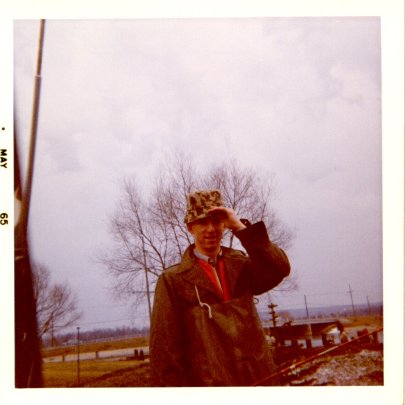 A picture of Jim Schlang taken in his room in the little stone house behind Schlangs Bavarian Inn. Notice his Varsity sweater hanging on the picture behind him! Taken in May of 1965.